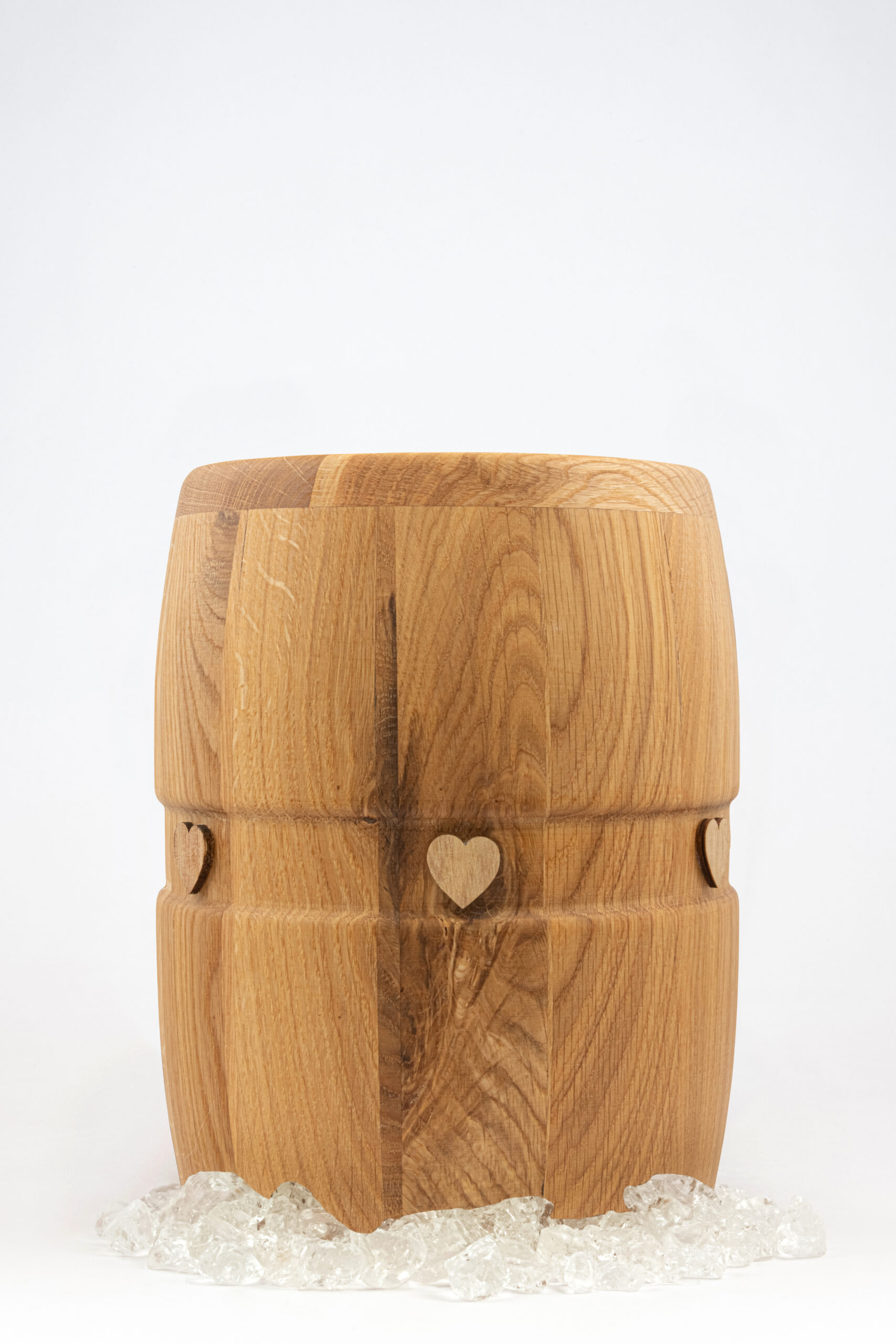 Eine Klassische Rund- Urne aus Wildeiche mit natürlicher Maserung.
