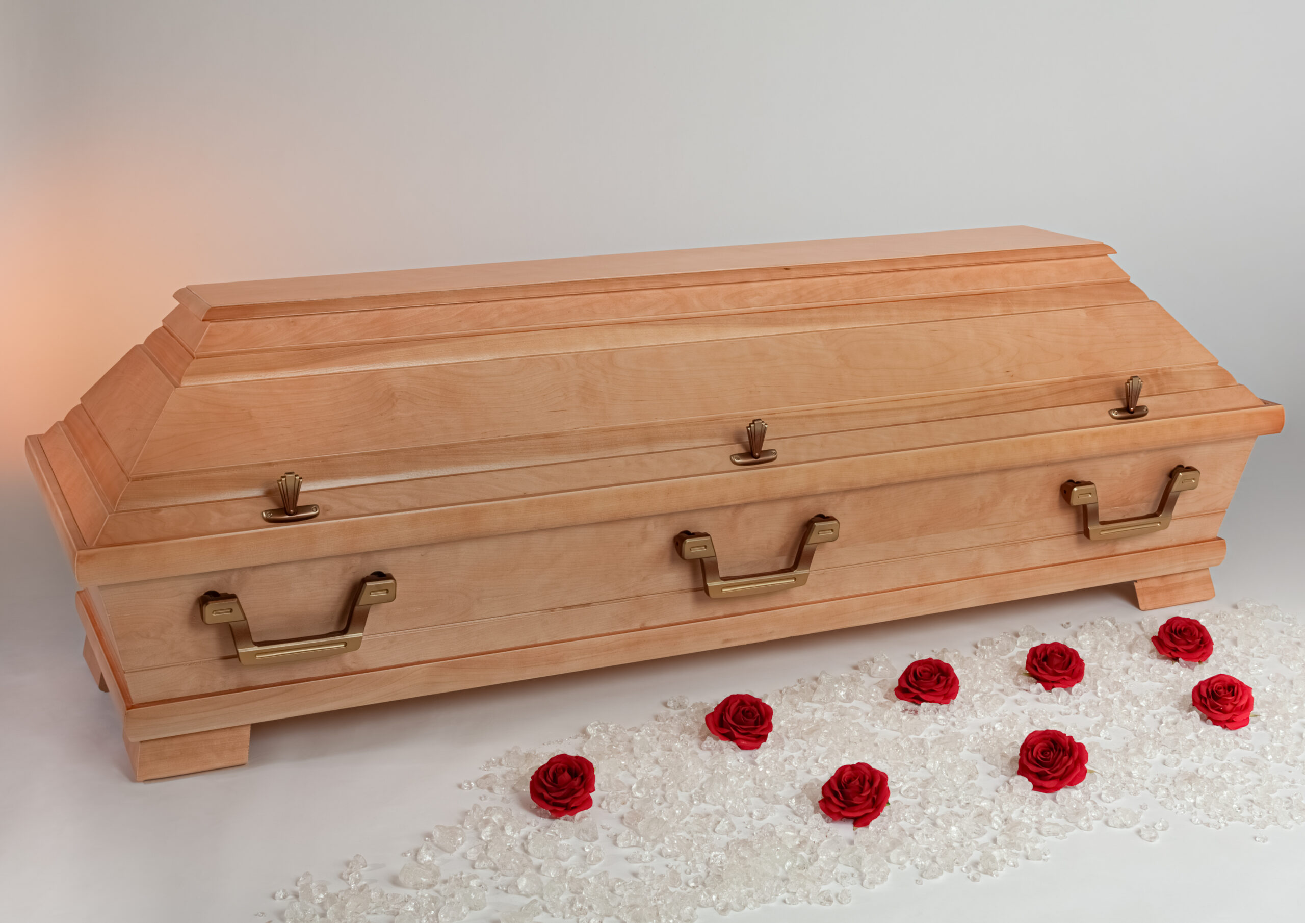 Klassischer Pappelsarg Rustikal Hell mit 4-Fach Kehlung sowie einem einfachen Deckbrett