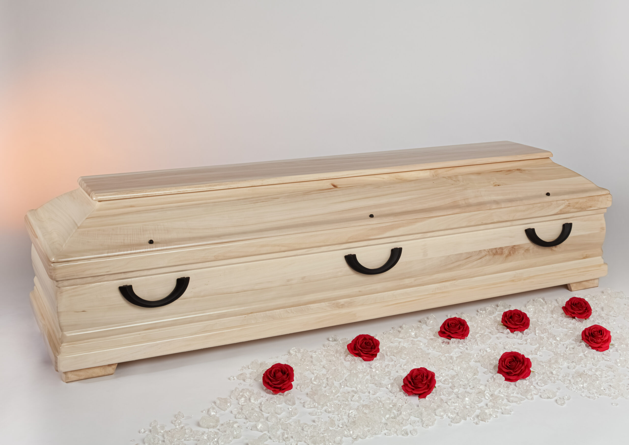 Massive Wildpappeltruhe Natur lackiert mit Karnieskehlung im Ober- und Unterkasten und runden Ecken sowie einem einfachen Deckbrett