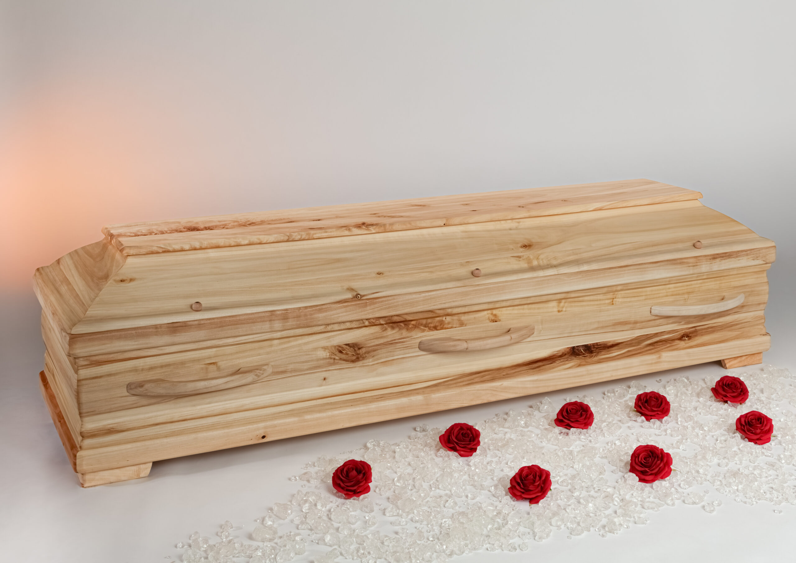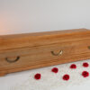 Massive Wildpappeltruhe Gebuttert mit Karnieskehlung im Ober- und Unterkasten und runden Ecken sowie einem einfachen Deckbrett