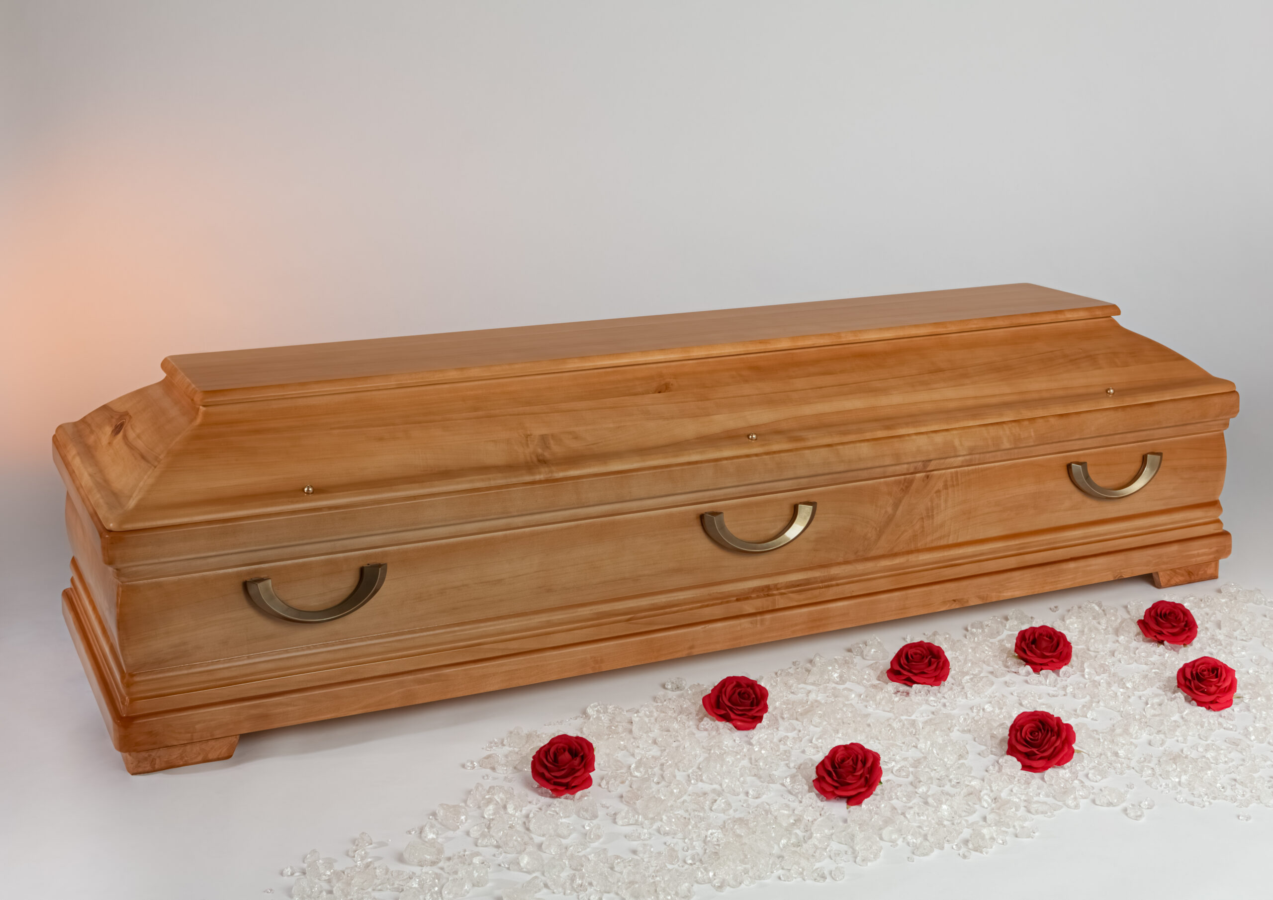 Massive Wildpappeltruhe Rustikal lackiert mit Karnieskehlung im Ober- und Unterkasten und runden Ecken sowie einem einfachen Deckbrett